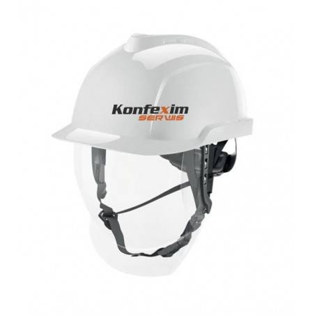 Hełm dla elektryka V-Gard 950 - to niewentylowany, lekki hełm z integrowaną przyłbicą. Czasza hełmu wykonana z tworzywa ABS, posiada system Fas-Trac® III umożliwiający regulację obwodu głowy od 52-63 cm za pomocą przycisku oraz 6-punktowego pokrętła ratchet oraz najwyższej jakości zamienny potnik z opcją prania.
