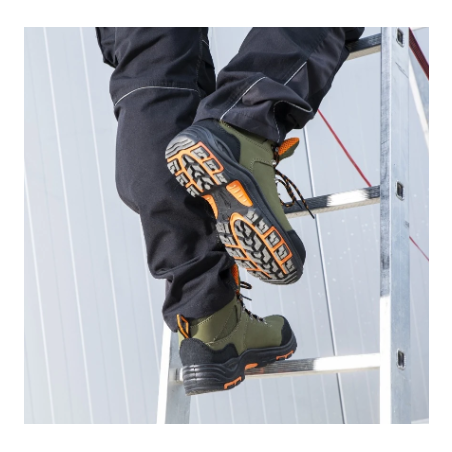 Dzięki wodoodporności buty GRINDER S3 nadają się do pracy na zewnątrz przy gorszej pogodzie. Przemyślanie wyprofilowana część kostki, która bardzo trzyma, a jednocześnie nie krępuje naturalnego ruchu, zapewnia wygodne i pewne chodzenie. Podeszwa wykonana z połączenia poliuretanu i gumy z naciskiem na doskonałą przyczepność i antypoślzigowość.