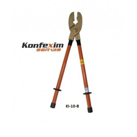 Kleszcze izolacyjne KI-10-B przeznaczone są do prac na stacjach, rozdzielniach elektroenergetycznych i służą do zakładania i wyjmowania wkładek bezpiecznikowych, nakładania i zdejmowania osłon izolacyjnych, przegród izolacyjnych itp. w urządzeniach elektrycznych o napięciu znamionowym do 10 kV. Wykonane są , w części roboczej z twardego, impregnowanego drewna bukowego, których szczęki zapewniają pewny chwyt wkładek bezpiecznikowych o średnicach 26 i 60 mm. Rękojeści posiadają część izolacyjną i chwytną rozdzieloną ogranicznikiem.