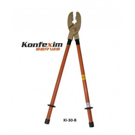 Kleszcze izolacyjne KI-30-B przeznaczone są do prac na stacjach, rozdzielniach elektroenergetycznych i służą do zakładania i wyjmowania wkładek bezpiecznikowych, nakładania i zdejmowania osłon izolacyjnych, przegród izolacyjnych itp. w urządzeniach elektrycznych o napięciu znamionowym do 30 kV. Wykonane są , w części roboczej z twardego, impregnowanego drewna bukowego, których szczęki zapewniają pewny chwyt wkładek bezpiecznikowych o średnicach 26 i 60 mm. Rękojeści posiadają część izolacyjną i chwytną rozdzieloną ogranicznikiem. Wysokość : 1332 mm