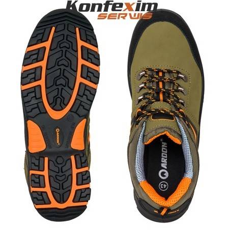 Półbuty robocze Ardon Grindlow S1P SRC charakteryzują się modnym outdorowym stylem oraz elegancką kolorystyką. Wykonane z bydlęcej skóry nubukowej w kolorze brązowym z szarymi, pomarańczowymi i czarnymi dodatkami. Wewnątrz znajduje się miękka wyściółka natomiast uchwyt taśmowy ułatwia zakładanie. Za ochronę stóp przed urazami odpowiada podnosek kompozytowy oraz wkładka antyprzebiciowa Kevlar®. Dodatkowo buty mają wzmocnienie na nosku chroniące przed okopaniem. Pod spodem znajduje się podeszwa będąca mieszanką poliuretanu i gumy. Jest odporna na oleje, smary, paliwa. Buty spełniają wymagania normy EN-20345 i są polecane do pracy przez cały rok.