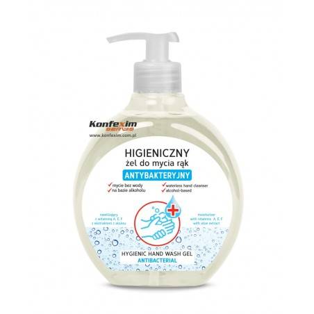Antybakteryjny higieniczny żel do mycia dłoni . Produkt z ekstraktem z aloesu , witaminy A , E i F .