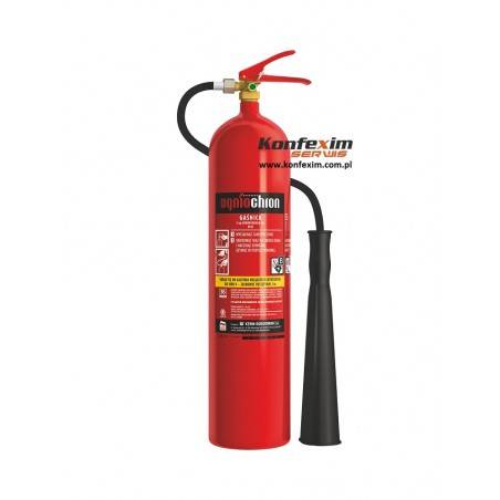 *Gaśnica GS-5x B/E pozwala na gaszenie urządzeń elektroenergetycznych o napięciu do 245000 V (fakt ten potwierdza dodatkowa etykieta klejona obok etykiety głównej).