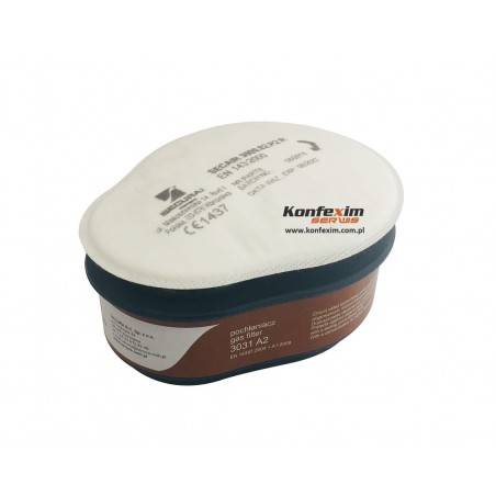 Zestaw filtrów 3061 A2P2 R przeznaczony jet do stosowania w komplecie z półmaską Secura 2000 i 3000, oraz maskami pełno twarzowymi