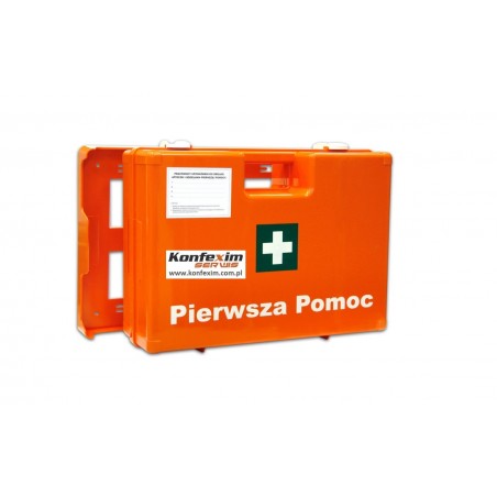 Apteczka przenośna PK-10 przeznaczona jest do biur, zakładów pracy, warsztatów, szkół, przedszkoli i innych obiektów użyteczności publicznej. Wykonana jest z plastiku, w kolorze pomarańczowym. Posiada uchwyt do mocowania na ścianie, gdzie służy jako apteczka stacjonarna, a w razie potrzeby istnieje możliwość wypięcia jej z hamaka i przeniesienia w żądane miejsce. Wymiary apteczki PK-10 : 280mm x 210mm x115mm.