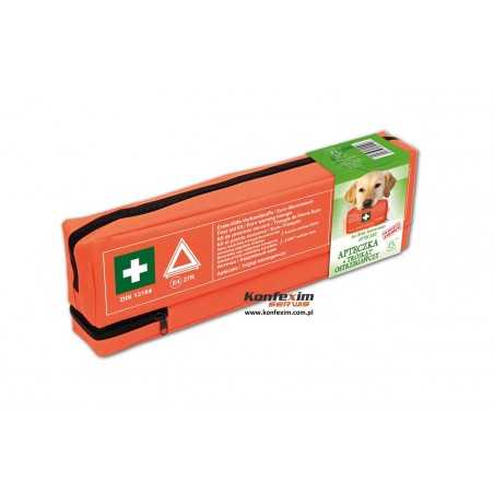 Samochodowa apteczka pierwszej pomocy COMBI przeznaczona jest do wyposażenia samochodów, motocykli oraz innych pojazdów mechanicznych. Wykonana jest w formie saszetki (z oddzielną kieszenią na trójkąt ostrzegawczy), z wodoodpornego materiału, zamykana na zamek błyskawiczny. Dodatkowo apteczka ma naszyty rzep mocujący ją do tapicerki. Wymiary apteczki : 450 mm x 140 mm x 50 mm