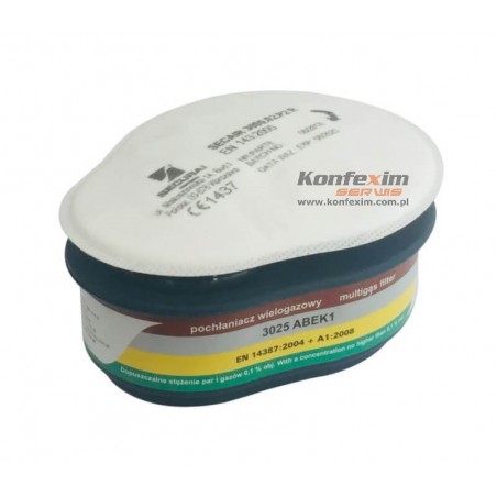 Zestaw filtrów 3045 ABEK1 P2 R, po skompletowaniu z maską, półmaską lub półmaską z kapturem, chroni układ oddechowy przed gazami organicznymi i nieorganicznymi, parami i gazami substancji organicznych, amoniakiem i jego pochodnymi organicznymi.