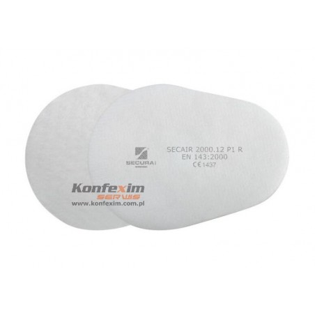 Filtr przeciwpyłowy SECAIR 2000.11 P1 N R , płaski , łezka, używany jest w półmaskach i maskach pełnych firmy SECURA i MSA wyposażonych w łączniki puszkowe. Chroni on układ oddechowy przed pyłami, aerozolami składającymi się z cząstek ciekłych i stałych, jeżeli stężenie rozproszenia aerozolu nie przekracza wartości 4x NDS.