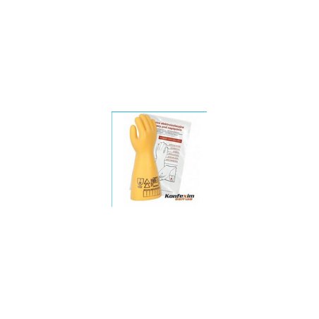 Rękawice elektroizolacyjne 10 kV , klasy 1 są podstawowym sprzętem ochronnym przy pracach pod napięciem. Przeznaczone są do pracy przy urządzeniach w rozdzielczych elektrycznych, stacjach transformatorowych, na liniach kablowych do 7500 V, na farmach wiatrowych itp. Wykonane zostały z jednolitego elastycznego kauczuku, o ergonomicznym kształcie dłoni. Zachowują szczelność i pełną izolację. Posiadają dodatkowo rękawice - wkłady bawełniane pochłaniające pot. Wykonanie i badania wyrobu zgodnie z normą EN 60903:2003 (EN 60903:2003+AC2:2005) kategoria RC . Produkt badane przy napięciu probierczym 10000 V.